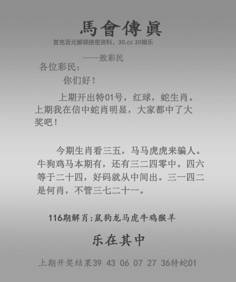 116期:男女②肖【男肖+鸡蛇】开:马24准